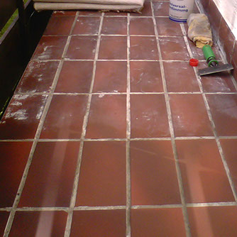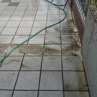 Verschmutzte Fliesen (oben) und gereinigte Fläche (unten)